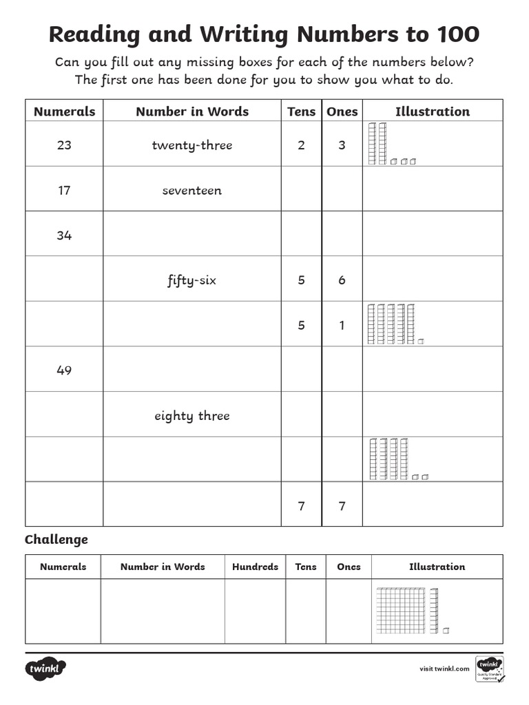 Reading and writing numbers to 100 reading and writing numbers to read and write numbers to 100 in numerals and. reading and writing numbers in figures and in words activities provides the best foundational math skill in kids. — pdf, 1.87 mb. — read & write numbers to 100. use this numbers worksheet to make sure your class can write their numbers in both numerals and words. There is a pattern to how the numbers are written from 1 to 100, but we can’t hear a regular. — numbers 20 to 100. lesson 2 of 2: The worksheet also tests your students understanding of.